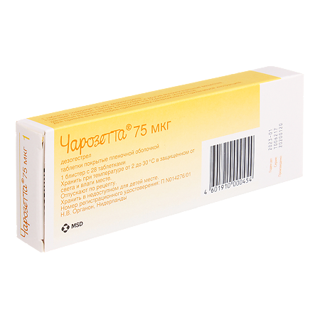 Описание препарата Чарозетта® (таблетки, покрытые оболочкой, 75 мкг) основано на официальной инструкции, утверждено компанией-производителем в 2008 году